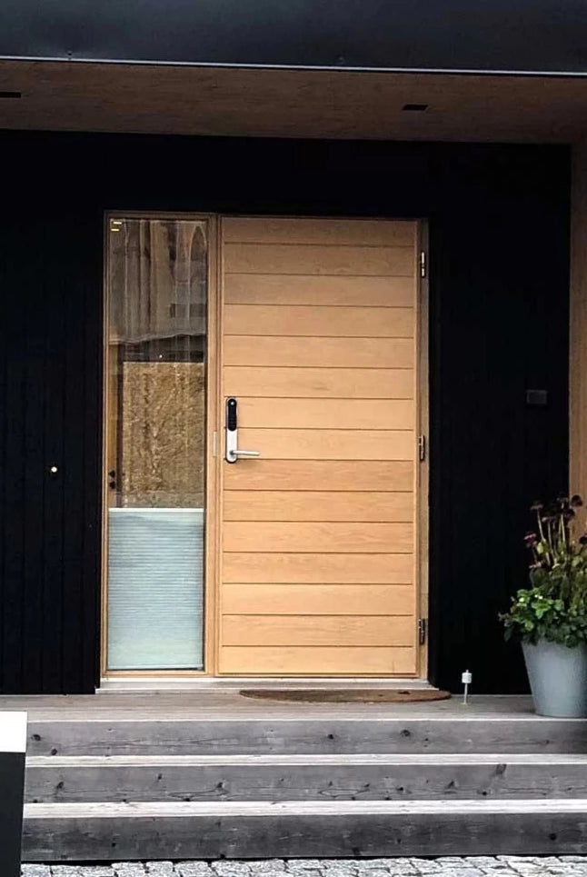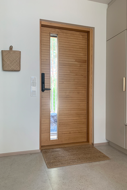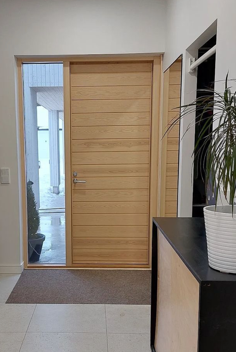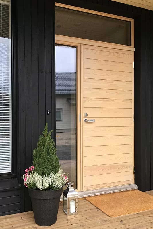 Choose a naturally beautiful Puustamo door for your home's exterior door! The tight-grained northern wood, which has slowly grown in the peace of the wilderness for decades, guarantees the best properties for a wooden door. We select knot-free wood for the frame and surface board materials. The sample images and colors of the doors are indicative.