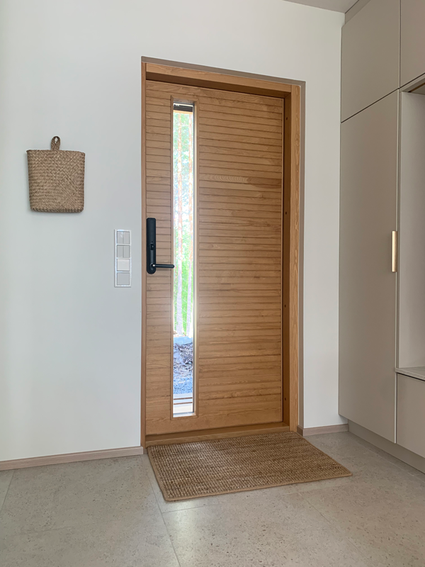 Puustamö doors are made from high-quality, selected, slow-growing northern close-grained pine or prestigious oak. A genuine, natural solid wood frame door is a warm welcome to your home.