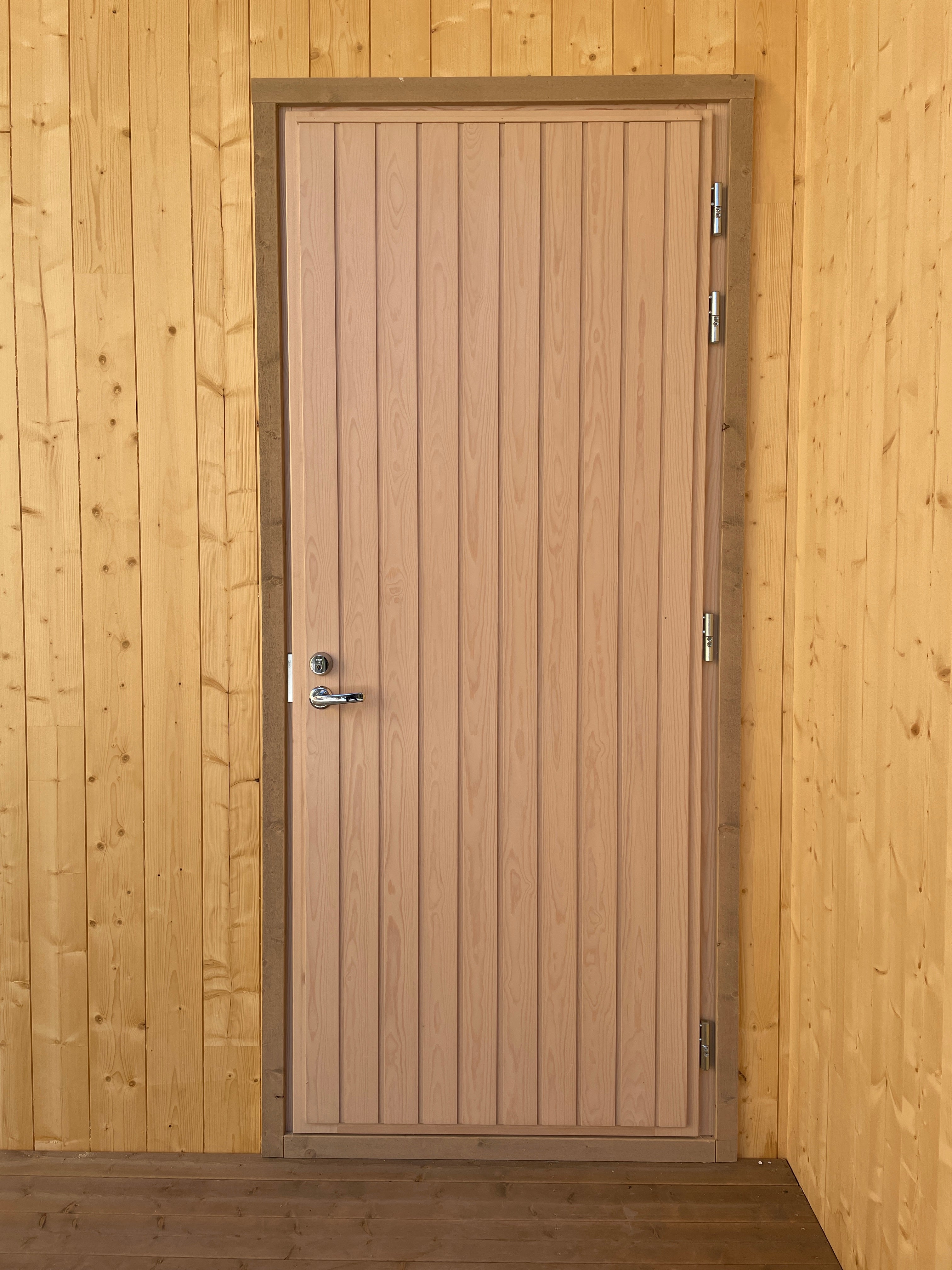 The Pähkänä door is a traditional vertically paneled wooden door. It functions as a door for both homes and cottages and fits into a wide range of architecture.