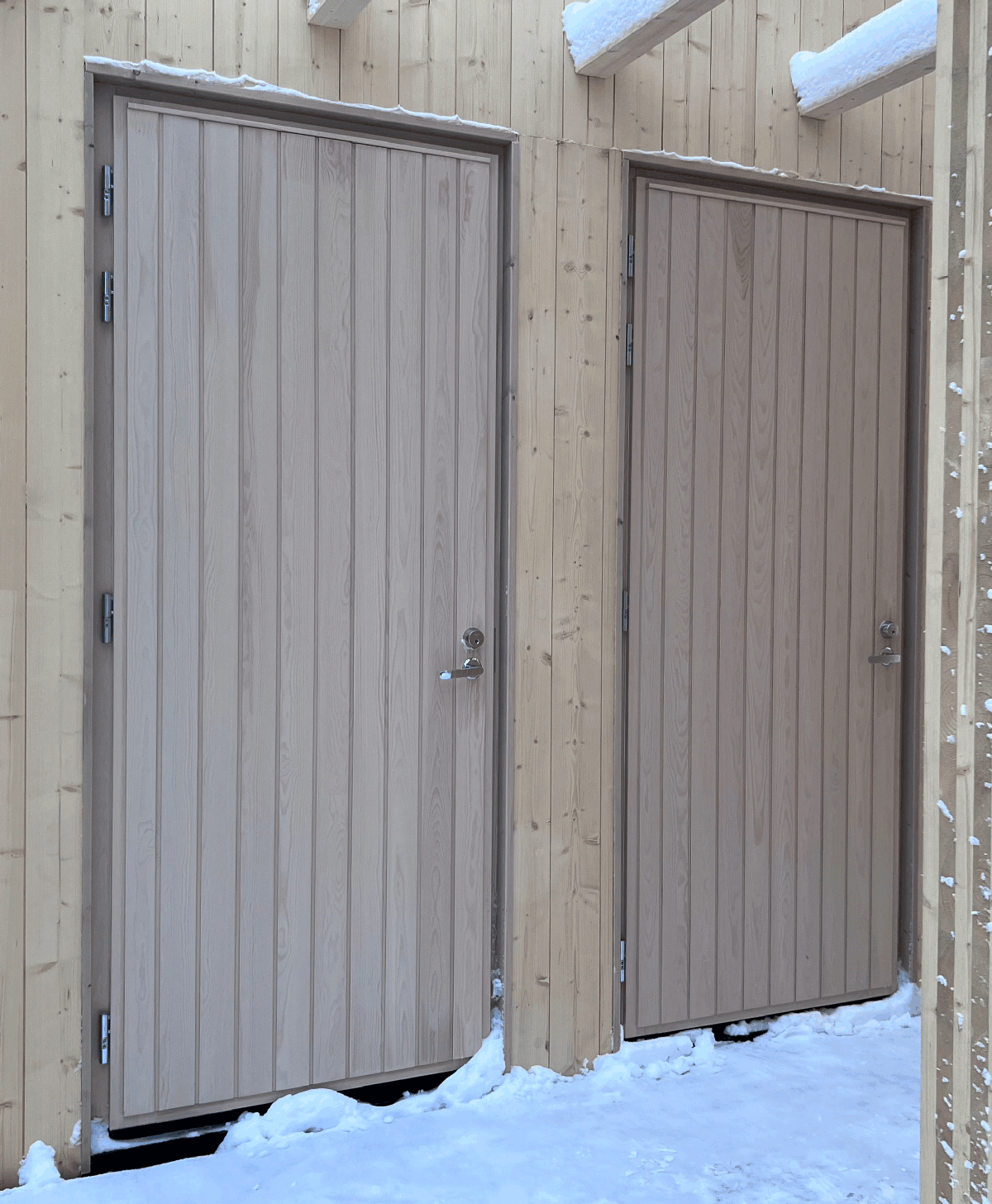 Puustamö doors are made from high-quality, selected, slow-growing northern close-grained pine or prestigious oak. A genuine, natural solid wood frame door is a warm welcome to your home.
