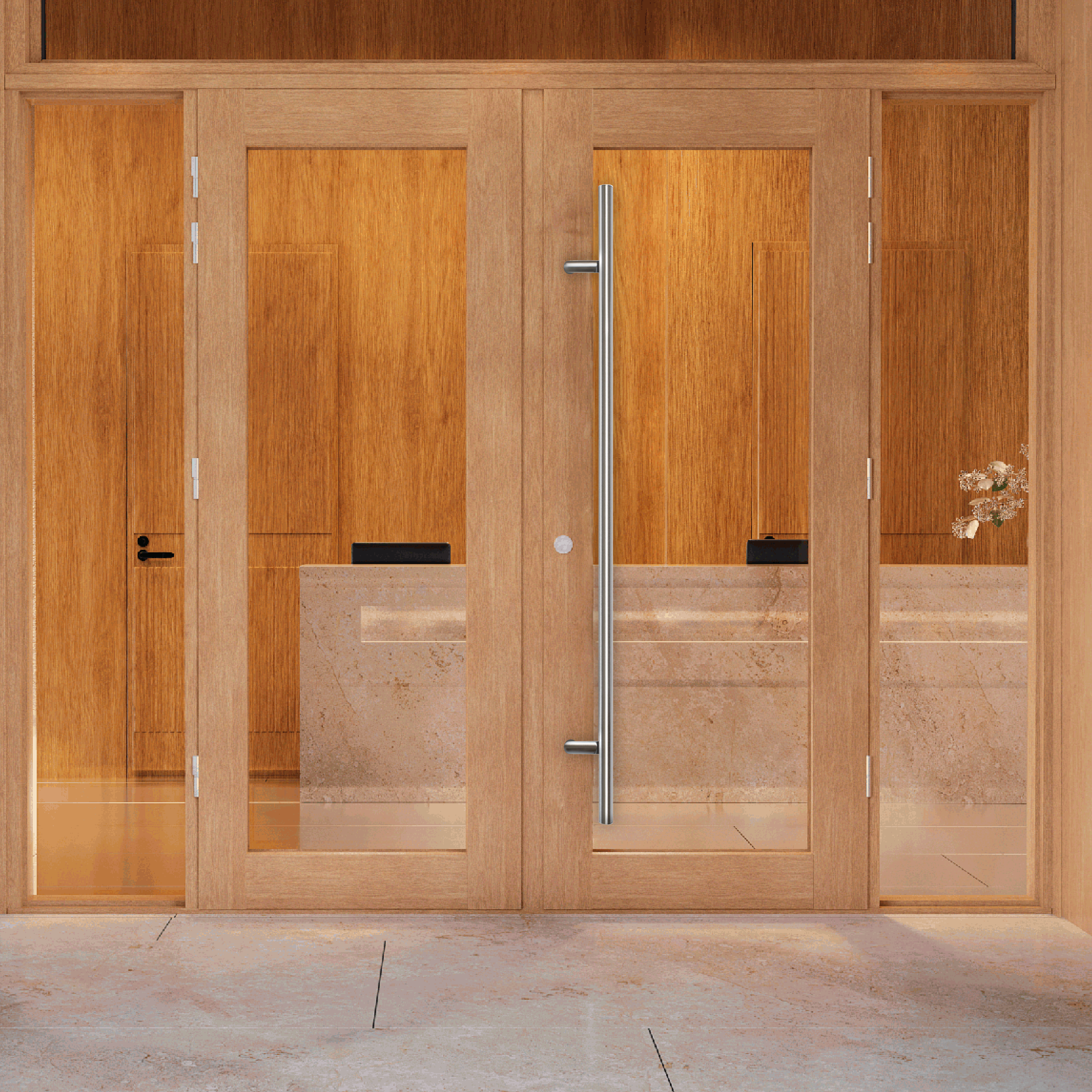 Toimitusaika 4 vkoa tilauksesta. Tuotehintaan kuuluu aina kaksi vedintä ja hinta sisältää asennuksen Puustamon oviin.