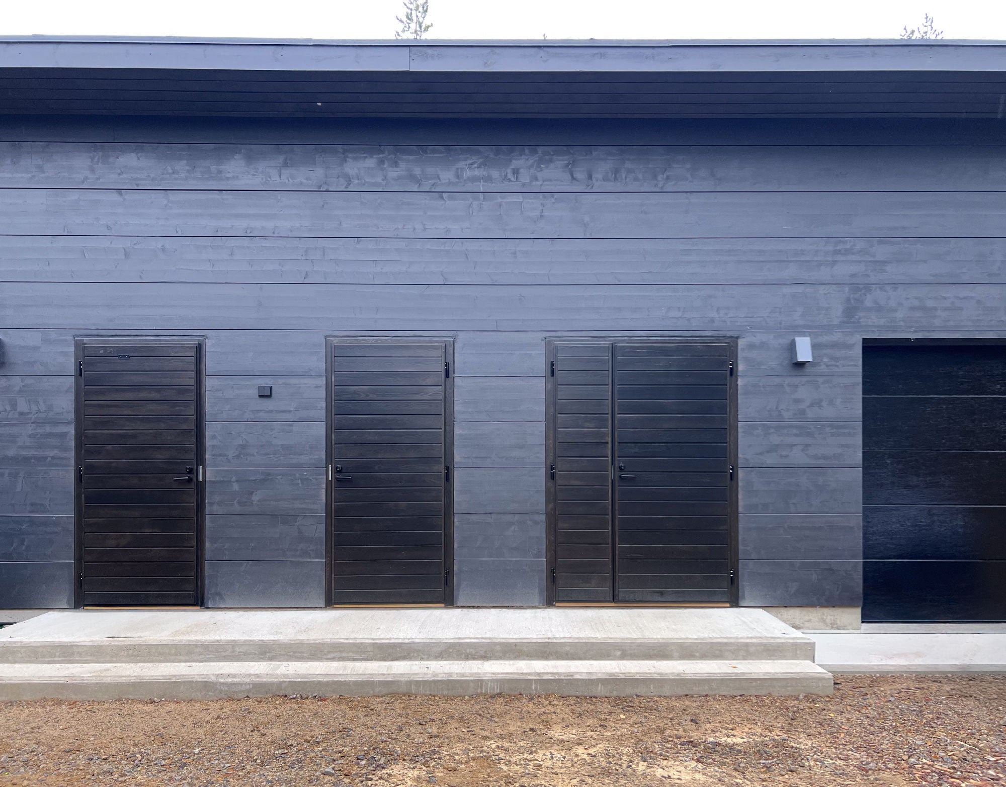 Paljakka is the most popular door model in our collection. The door has simple, wide horizontal paneling. The door is equipped with a variety of handles, from long vertical handles to round or basic handles.