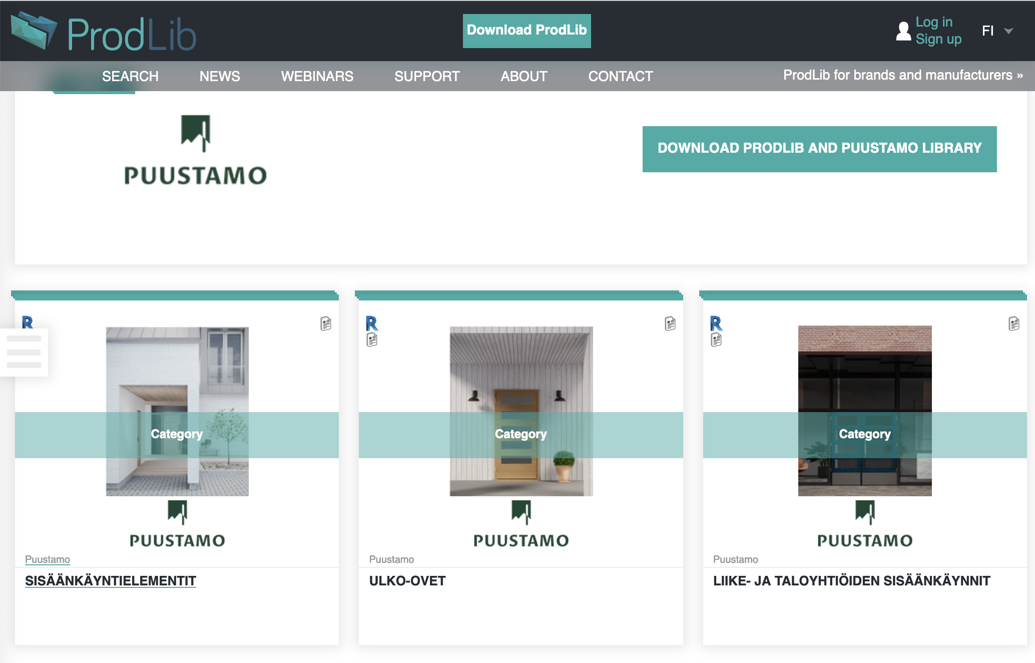 BIM-objektien avulla lisäät ovet ja sisäänkäyntielementit helposti suunnitelmaasi. Puustamo tuotteiden Revit-ja ArchiCAD suunnitteluobjektit löytyvät ProdLib-kirjastosta.