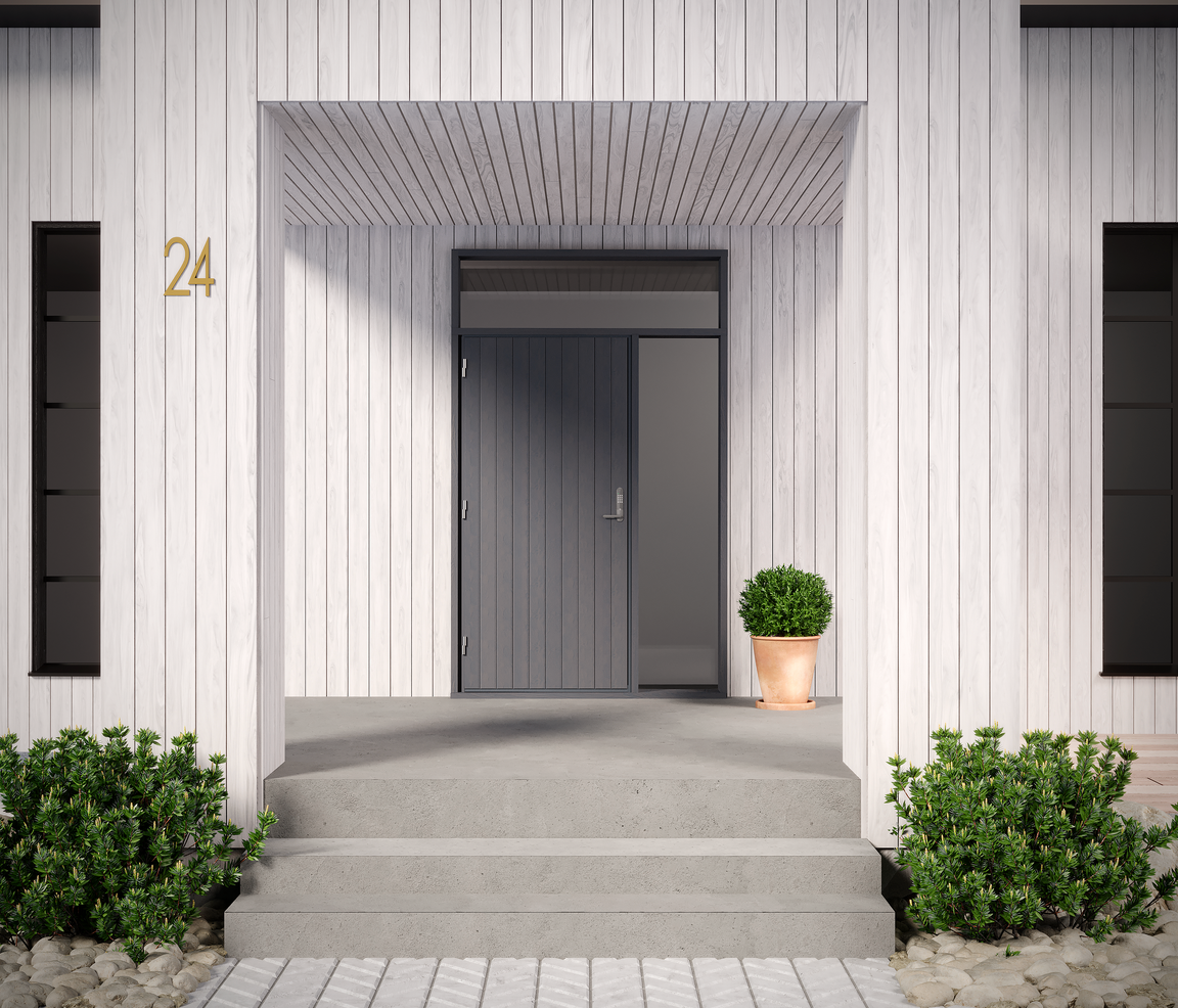 Puustamon Aho-ovi on perinteinen leveällä paneelilla verhoiltu puuovi. Se toimii niin kodin kuin mökin ovena ja istuu monenlaiseen arkkitehtuuriin.