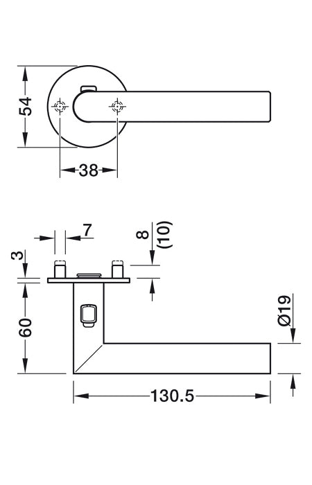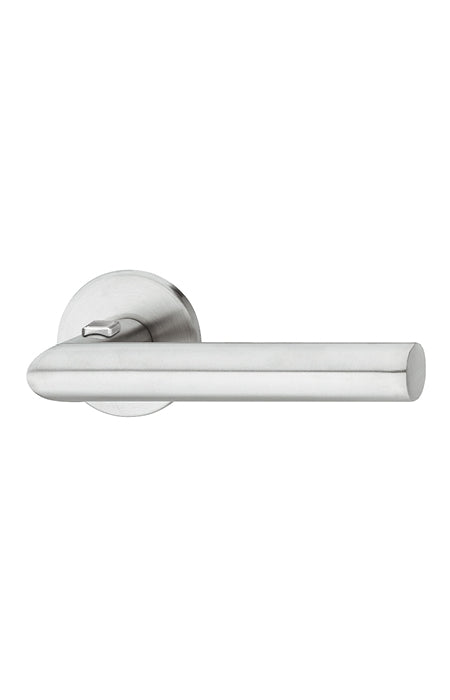 Tähän painikkeeseen ei tarvitse erillistä vääntönuppia lukitusta varten. Pieni lukitusnappi löytyy painikkeen yläpinnasta. Saatavilla mustan ja teräksen väreissä.