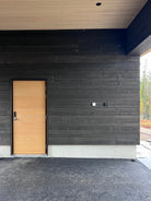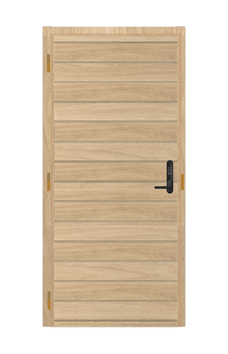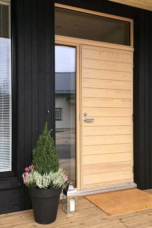 Paljakka on mallistomme klassikko. Ovessa on yksinkertainen, leveä vaakapanelointi. Paljakkaan sopii monenlaiset vetimet kuten pystyvedin ja pyöreä puuvedin.